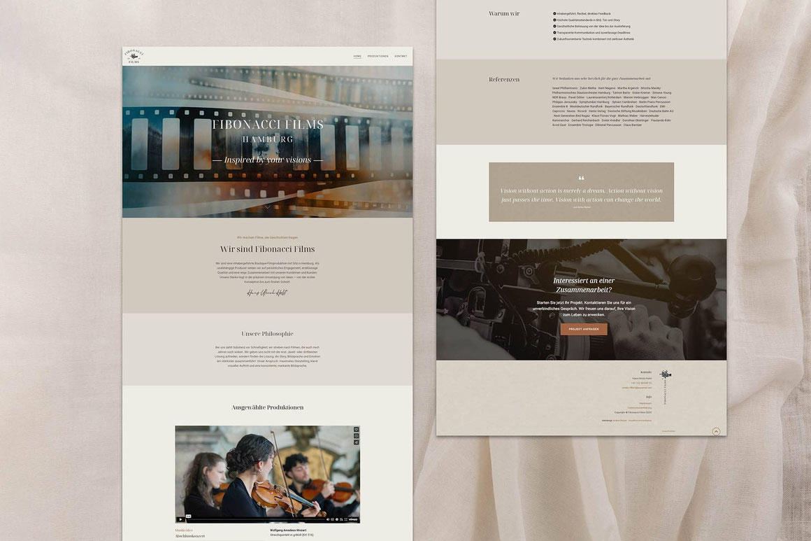 Fibonacci Films wünscht sich eine Modernisierung seiner Website inklusive neuem Logo. Ziel ist eine zeitgemäße, klare Markenwirkung, die ihre Leidenschaft für kreative Musikvideos und Dokumentarfilme widerspiegelt. Die Website soll nutzerfreundlich, responsive und visuell fokussiert sein. Das neue Logo soll Einfachheit, zeitlose Ästhetik und ein starkes Wiedererkennungsmerkmal vereinen – flexibel einsetzbar für Web, Print und Social Media. Die Modernisierung umfasst außerdem aktualisierte Typografie und Farbpalette. Ziel ist eine Dimension, die sowohl künstlerische Vision als auch professionelle Zuverlässigkeit kommuniziert.